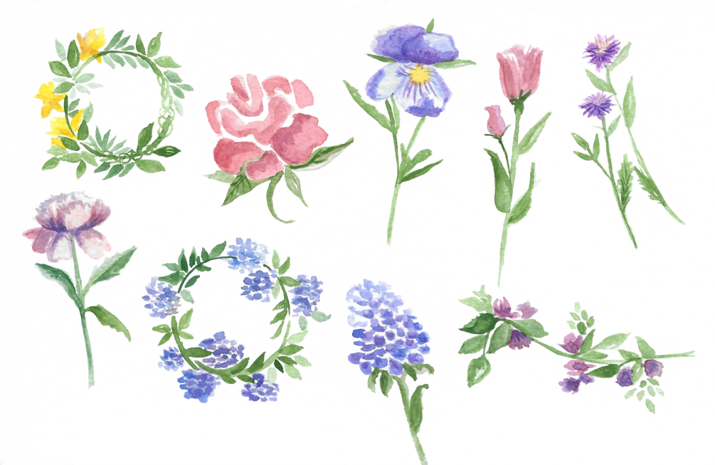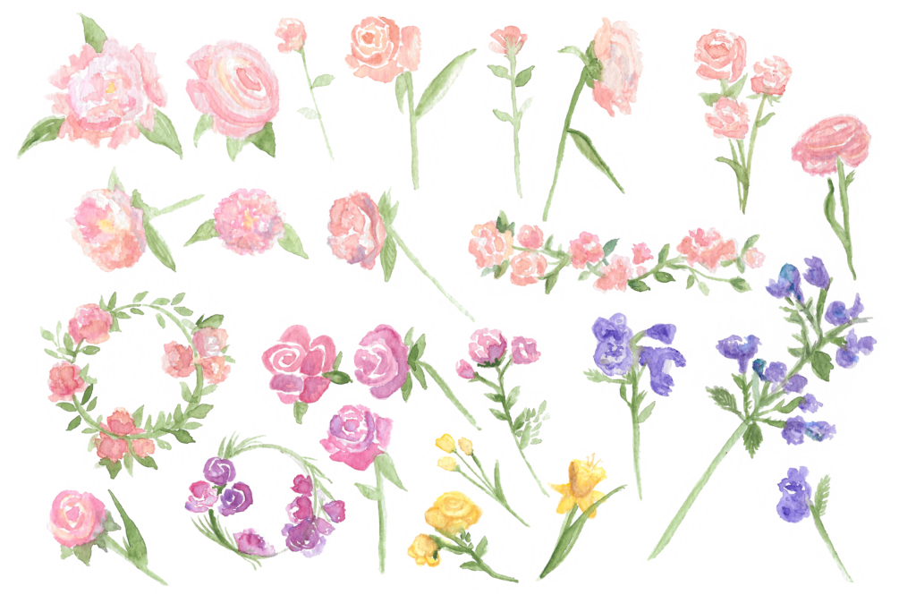 All of the original flowers were hand painted with watercolor paint, and scanned in to create PNG files. The watercolor image files come in PNG format with a transparent background. Files are in 300dpi or 600dpi, depending on the image. This collection includes 44 watercolor images.